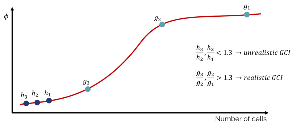 Obviously, you should always check your refinement ratio and ensure that you satisfy at least [katex]r>1.3[/katex]. However, sometimes you may be close to the limit and believe that you are getting a robust grid convergence index calculated. You should also check the calculated order of approximation and check if that is similar to your actual order or approximation. So, if you use a second-order scheme, your calculated order of approximation should ideally be close to that. But if it has a value of, say, 7, you should be alarmed.