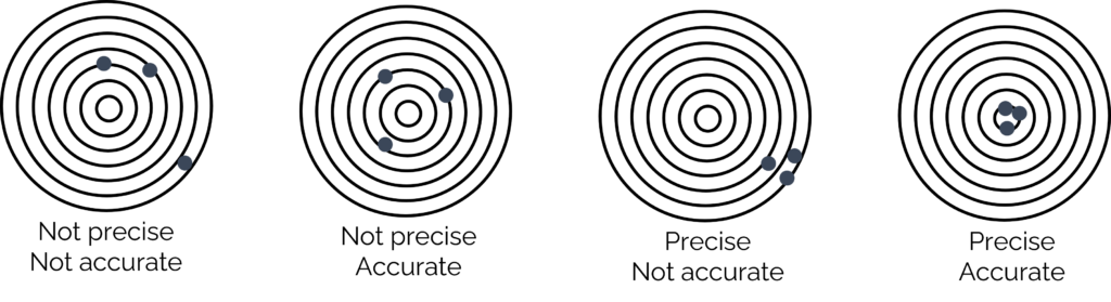 - Precision: A repeated measurement will result in a value that is close to other measurements