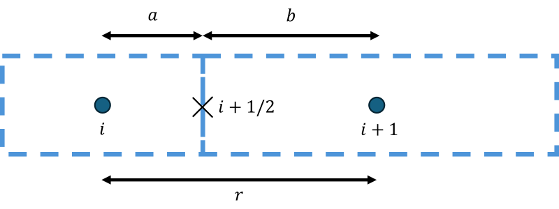 In the figure above, we said that the flow is coming from the left, and it is going to the right. If I wanted to capture this behaviour, I want to make sure that my numerical scheme is taking more information from the left side from the black dot compared to the right side, as it is the flow coming from the left which is determining the flow pattern/characteristics to the right of the black dot.