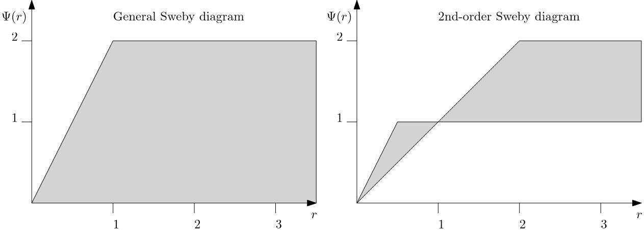 As a remedy, we have to use flux limiters, which we will look at further below, at least for highly compressible flows. Flux limiters may be used for incompressible flows with a smooth solution, but they don't have to be used (and typically aren't).